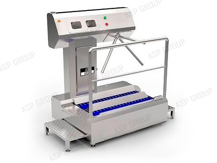 Купить станцию гигиены рук и обуви/Санпропускник ASP-HL-03 в Москве, недорого по очень выгодной цене у компании ООО «Фаворит Мясной Промышленности». Станция гигиены полного контроля ASP-HL-03 (санпропускник) — односторонняя, проходная, с устройством дезинфекции обуви механическими щётками, устройством дезинфекции рук и устройством контроля доступа. Санитарно-гигиеническое оборудование от «ASP-group». Дезинфекция — главная функция этого агрегата.